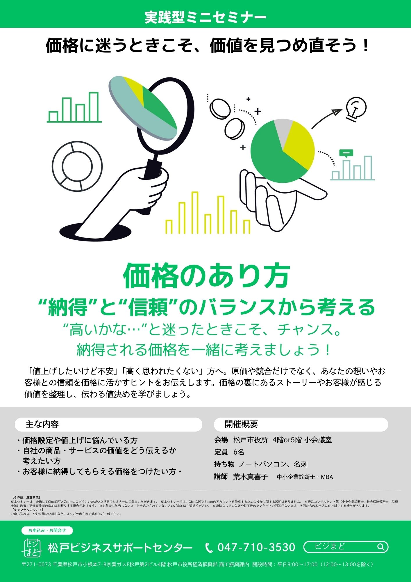 このセミナーでは、“価値に見合った価格”を考えるヒントをお伝えします。
